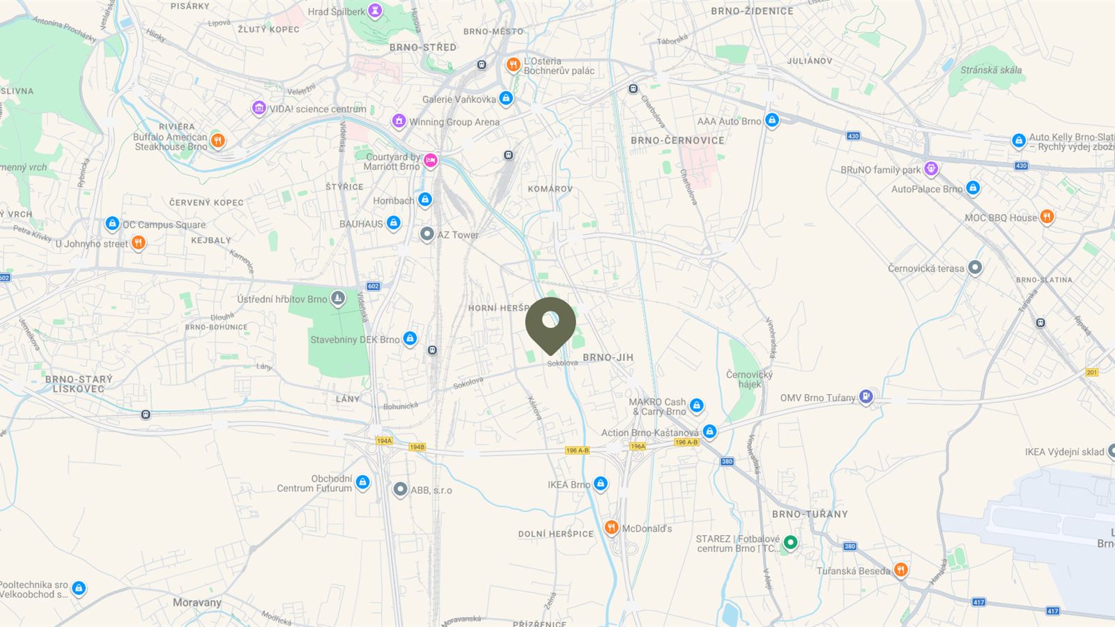 RIVA Rezidence se nachází jižně od centra Brna, kde meandry řeky Svratky vytváří přirozený prostor pro volnočasové aktivity. Lokalitou prochází oblíbená dálková cyklotrasa, která denně láká cyklisty, bruslaře i běžce. Vyhledávanými místy v okolí jsou také rekreační biotop, golfové hřiště, jump park, skate parky i plážový volejbal či lezecká stěna.